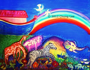 Rainbow “Rainbow”, Genesis 6:19, acrylic painting by Chong “Cindy” Lee, original size 20″x30″ Share this: Share on X (Opens in new window) X Share on Facebook (Opens in new window) Facebook Like Loading... Related