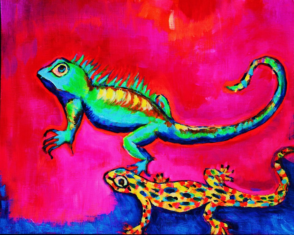 He made A glowing, calm and cool lizard with questioning eye.